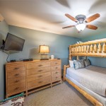 Second Bedroom: 1 twin/queen captains bunk bed, 32 inch flat screen, closet, dresser, ceiling fan; bathroom with vanity and shower/tub is located outside of bedroom in the hall