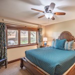 Master Bedroom: 1 king bed, 32 inch flat screen TV, walk-in closet, dresser, ceiling fan; ensuite bathroom with vanity and shower