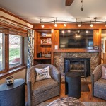 Living Room: 50 inch flat screen TV, DVD player, wood burning fireplace (firewood available for purchase at local grocery stores and gas stations), ceiling fan, 1 double murphy bed