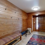 Start your stay on the ground level, where a flagstone mudroom makes it easy to drop your gear after a day outdoors. With boot dryers, bench seating, gear hooks, and even a map of Grand Teton National Park, the space sets the tone for adventure. A queen bedroom with a wall-mounted TV sits adjacent to a bathroom featuring a walk-in shower. After a day of exploring, unwind in your own private sauna, or take care of laundry in the full-sized washer/dryer room—conveniently located on this floor.
